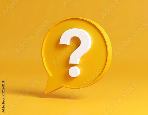 Golden 3D Question Mark in Speech Bubble Inquiry, Help, FAQ, Support, Query
