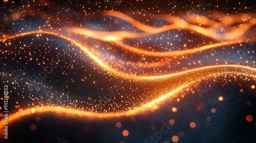 Golden Abstract Art Deco Design with Swirling Lines and Shimmering Dots on Dark Background