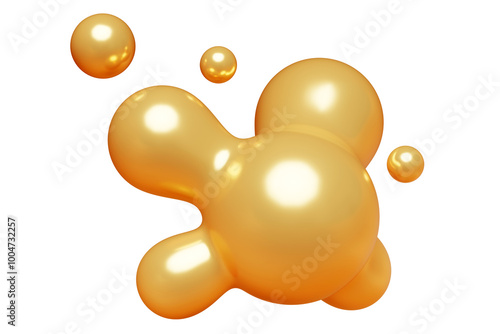 Golden abstract liquid metaball shape. 3d render illustration of fluid soft bubble blob. Organic gold decorative sphere geometric form. Morphing ball aqua drop or molecule. Flow particles.
