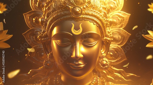 Golden Artistic Face of Lord murugan hindu god kartikeya statue