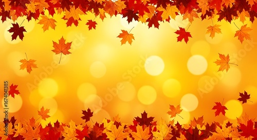 Golden autumn leaves carpeting a forest floor, bathed in warm, soft sunlight, creating a vibrant and cozy seasonal atmosphere
