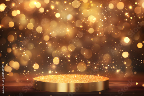 Golden Award Trophy in Spotlight with Celebration and Stage Lights