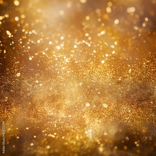 Golden background, shiny lights grunge background, shiny defocused abstract twinkling lights. AI generation