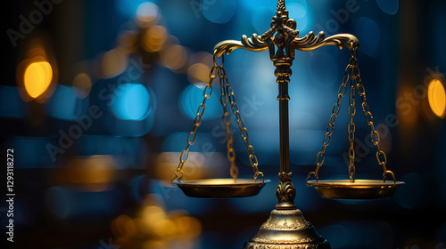 Golden Balance Scales of Justice – Symbol of Law, Fairness, and Legal System - High-Resolution Stock Image for Lawyers, Court, and Judiciary on bokeh Background