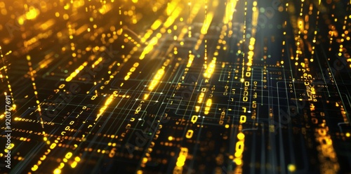 Golden bars set against a futuristic digital circuit background create a striking contrast between luxurious elegance and high-tech design.