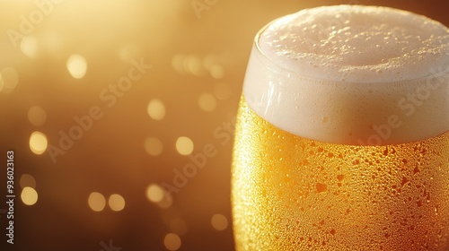 Golden beer with a frothy top, softly lit in warm tones, creating a serene and inviting scene.