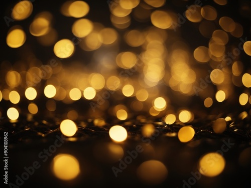 Golden bokeh lights black background