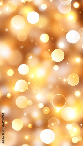Golden bokeh lights, shimmering, blurred circles on amber background, festive, celebratory