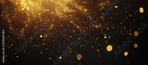 Golden bokeh lights shimmering on a dark background creating a magical atmosphere with blank space for text or branding.