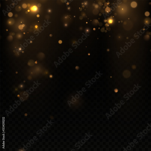 golden bokeh particles and glare on a transparent background
