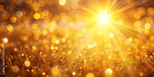 Golden Bokeh Sunburst Over Grass, Abstract Background, Bokeh Lights , Sun Rays