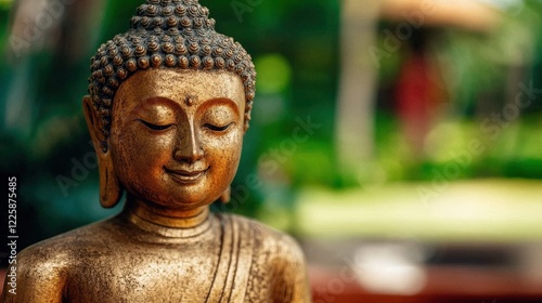 Golden Buddha Statue Surrounded By Lush Greenery In A Peaceful Setting