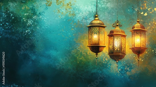 Golden Calligraphy Lanterns Hanging on Gradient Background