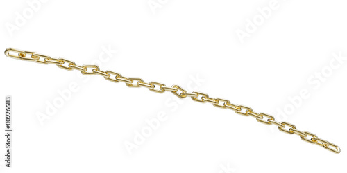 Golden chain isolated on a transparent background. 3D render of yellow metal chain.