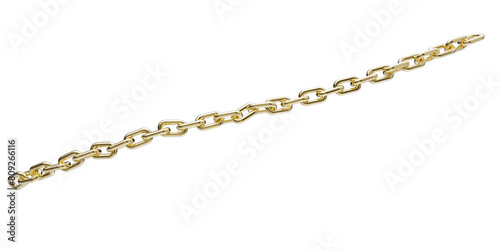 Golden chain isolated on a transparent background. 3D render of yellow metal chain.