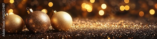 Golden Christmas baubles isolated on a simple backdrop, emphasizing a festive holiday ambiance. Created with, Generative AI