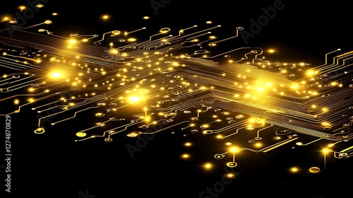 Golden Circuit Board, Data Flow, Abstract, Technology