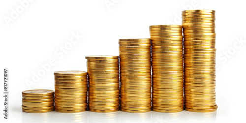 Golden coin stack growth up isolated on white background with clipping path. money saving, financial grow