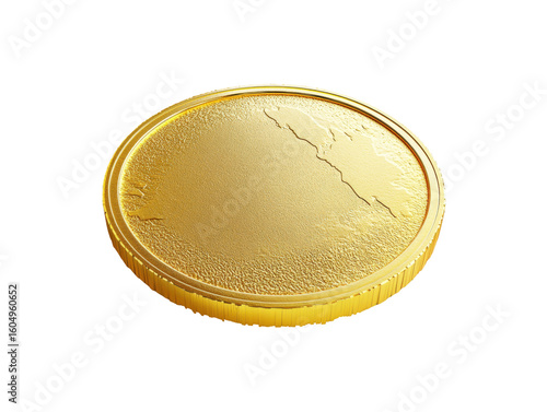 Golden coin with intricate design.