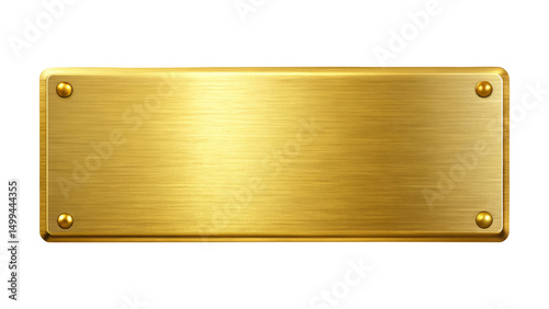golden color blank shiny metal nameplate isolated on transparent white background png, clipping path