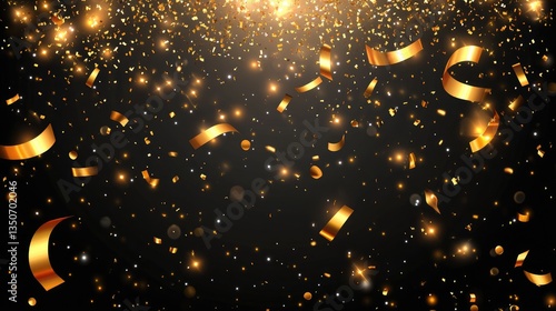 Golden confetti and shimmering lights create a festive atmosphere for celebrations and events