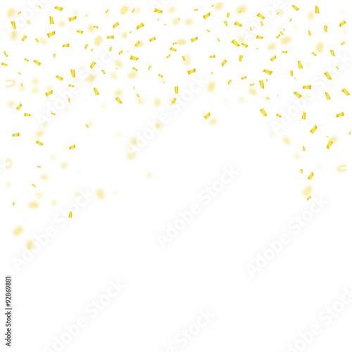 Golden confetti falls isolated onwhite background. Vector illustration.