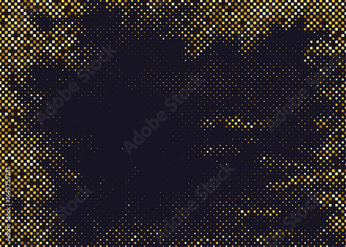 Golden disco party seamless pattern. Yellow square sequin mosaic texture background. Abstract shining gold halftone wallpaper.