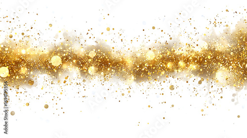 Golden dust. Beautiful light flashes. Dust particles fly in space. Bokeh effect. Light rays isolated on a transparent background