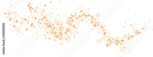 Golden dust, sparks and golden stars shine with special light. Trace of speed lines. Christmas light effect. Sparkling magic dust particles. PNG.
