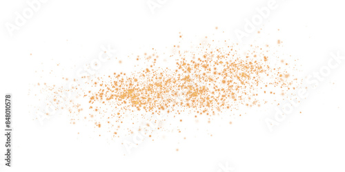 Golden dust, sparks and golden stars shine with special light. Trace of speed lines. Christmas light effect. Sparkling magic dust particles. PNG.