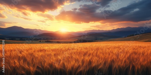 Golden ears of wheat swaying gently sunlit field, their grains full and ripe, creating a sense of abundance and harvest season