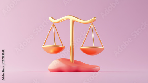 Golden ethical scales symbolize justice and balance on soft pink background, representing business ethics and fairness in decision making
