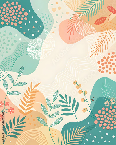 Golden Floral Flow: A captivating abstract design featuring elegant golden and turquoise floral elements entwined with flowing shapes.