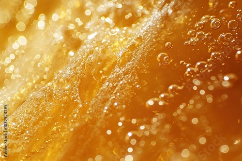 Golden foam and bubbles. Abstract background, wallpaper, banner