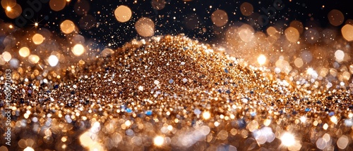 Golden glitter backdrop with bokeh lights. Possible use for holidays or celebrations.
