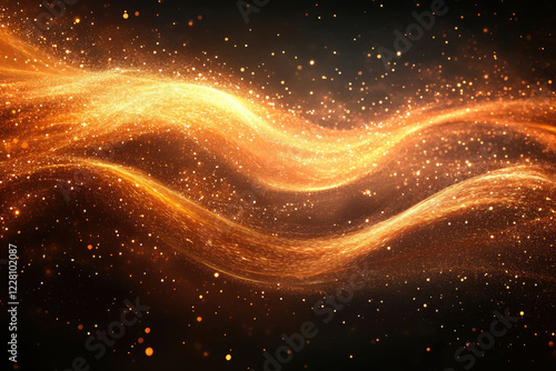 Golden glitter waves flow across a dark background, creating a luxurious and magical effect.