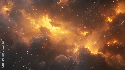 Golden glowing clouds in a starry sky
