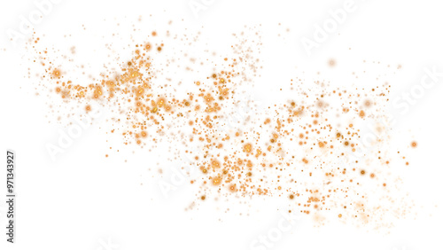Golden glowing light effect with many glitter particles. Starry cloud with dust. Magic christmas decoration. Luminous bokeh softly shimmering golden light. Light abstract glowing lights. PNG.