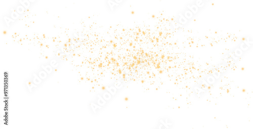 Golden glowing light effect with many glitter particles. Starry cloud with dust. Magic christmas decoration. Luminous bokeh softly shimmering golden light. Light abstract glowing lights. PNG.