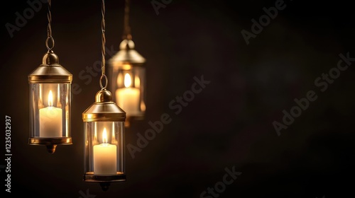Golden Hanging Lanterns with Candles: A Serene and Warm Atmosphere