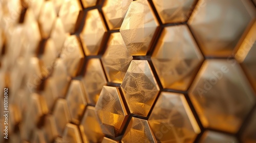 Golden Hexagonal Tiles Reflecting Warm Glow.