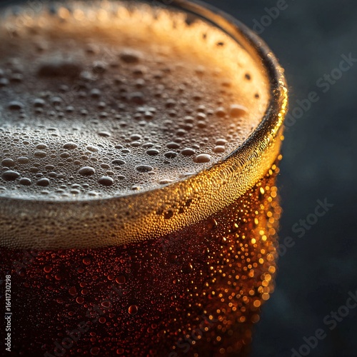 Golden Hour Brew: Close-Up of a Frothy Dark Beer