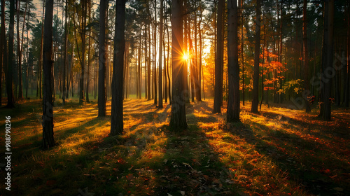 Golden Hour in the Forest: A Stunning Autumn Landscape