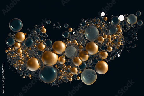 Golden Iridescent Bubble Art on Dark Navy: Dynamic and Elegant Design