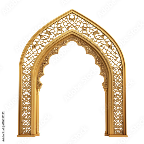 Golden Islamic Arch, Ornate Design, Isolated on Transparent Background
