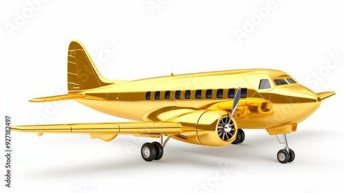 Golden Jet Passengers Airplane on a white background. Neural network ai generated art