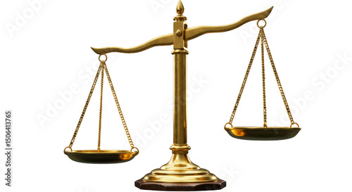 Golden Justice Scales Illustration Isolated on Transparent Background