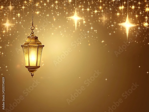 Golden Lantern Hanging Against Sparkling Starry Background