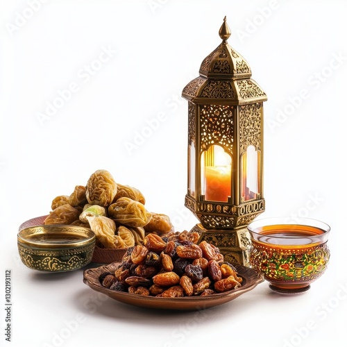 Golden Lantern with Dates Raisins and Tea Still Life