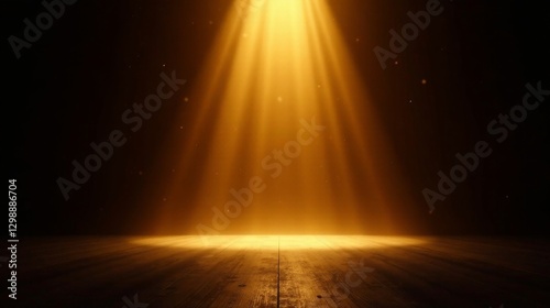 Golden Light Beam Illuminates Dark Wooden Floor, Creating a Dramatic and Mysterious Atmosphere for Design Projects